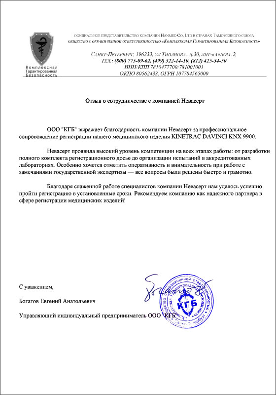 Рис.1: Благодарственное письмо от ООО "КГБ"